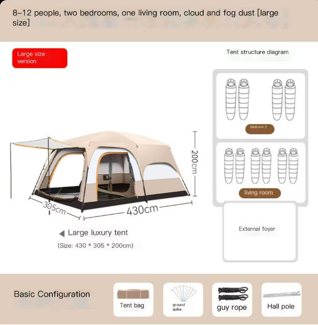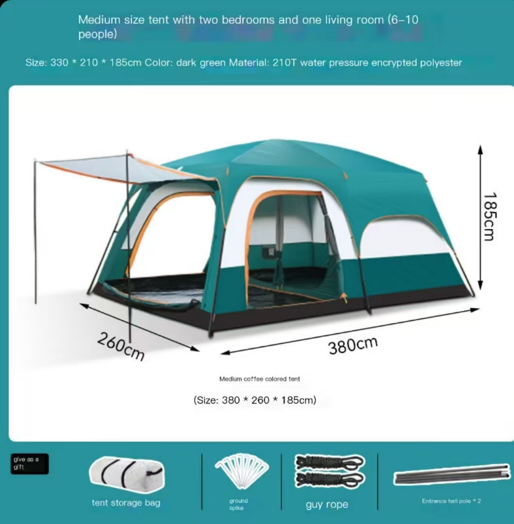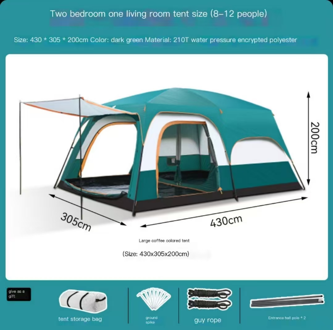 Outdoor Tent with Two Rooms and a Living Area, Large Space Camping Gear, Portable Foldable, Sun and Rain Protection for Park Picnics