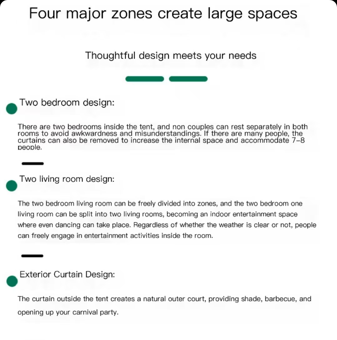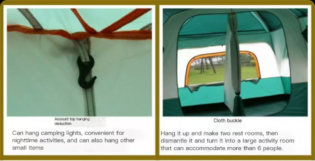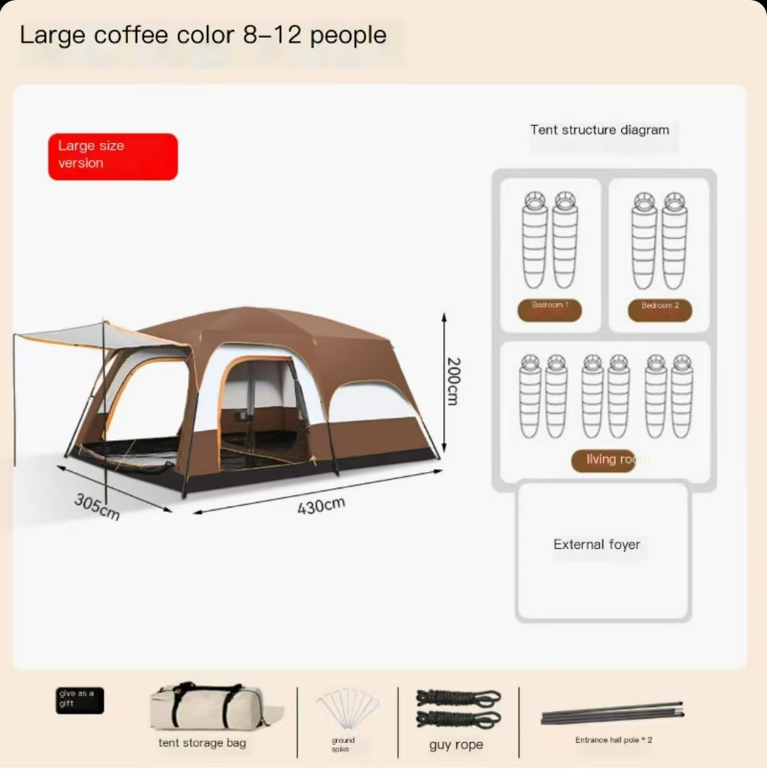 Outdoor Tent with Two Rooms and a Living Area, Large Space Camping Gear, Portable Foldable, Sun and Rain Protection for Park Picnics