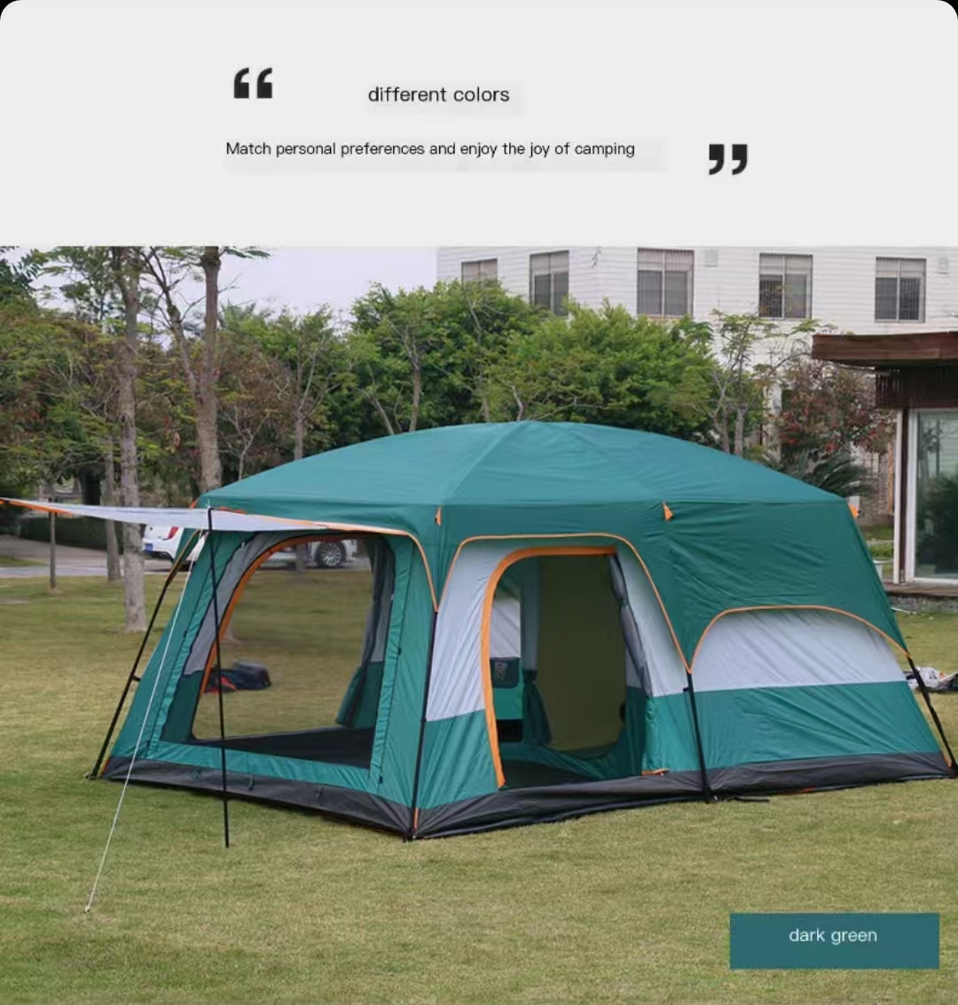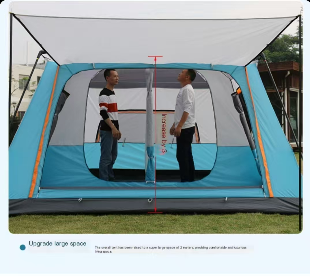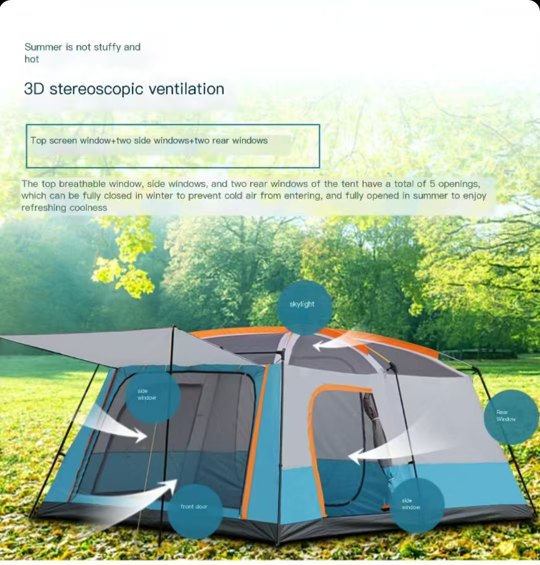 This outdoor camping tent features a spacious design, comfortably accommodating multiple people. Its portable folding structure makes storage easy and travel hassle-free. Made with high-quality fabric, it offers strong sun protection and efficient rain resistance, handling variable weather conditions. Quick to set up and well-ventilated, it is suitable for camping, hiking, park picnics, and various outdoor activities, making it an ideal gear for outdoor adventures.