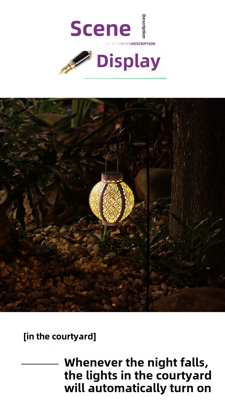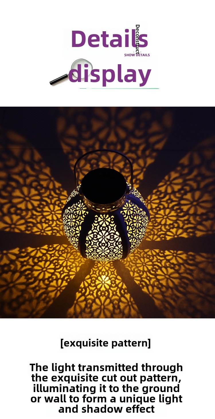 Solar powered lamp, European projection lamp, hollow out lamp, outdoor villa terrace decoration, wrought iron lantern